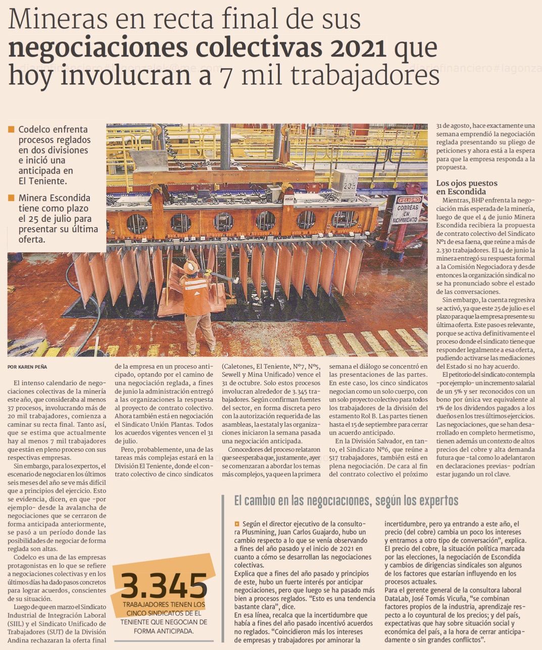 Para el gerente general de la consultora laboral DataLab, José Tomás Vicuña, “se combinan factores propios de la industria, aprendizaje respecto a lo coyuntural de los precios; y del país, expectativas que hay sobre situación social y económica del país, a la hora de cerrar anticipadamente o sin grandes conflictos”.