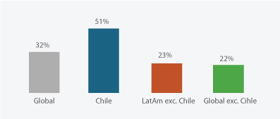 Al examinar las estadísticas de los principales proyectos de inversión en cobre de los últimos 15 años, se revela que los retrasos y los excesos presupuestarios son generalizados. Solo un puñado de proyectos se ha ejecutado dentro del presupuesto (<10%): Quellaveco, Mina Justa, Cobre Panamá y Kamoa- Kakula. Sin embargo, este problema parece ser más agudo en Chile, alcanzan- do un 51% de sobrecosto en la inversión. (Ver gráfico).