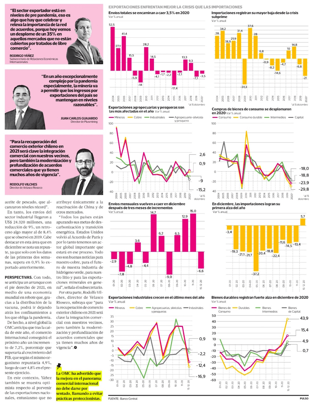 On the other hand, Rodolfo Vilches, director of Velasco Rioseco, emphasizes that “for the recovery of Chilean foreign trade in 2021, commercial integration with our neighbors will be key, but also the modernization and deepening of trade agreements that have been in force for many years” .