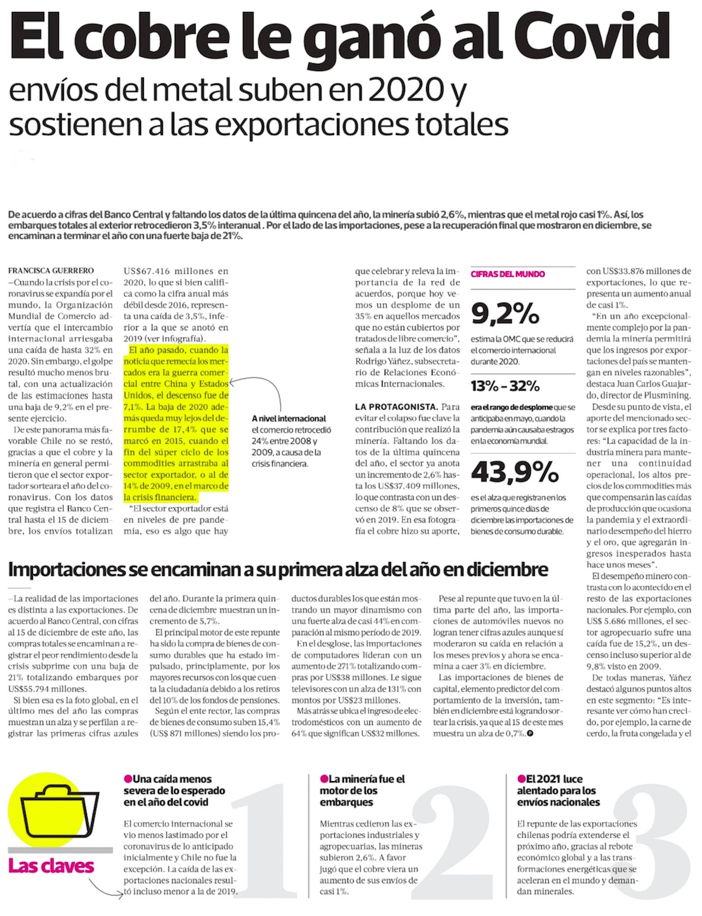 “In an exceptionally complex year due to the pandemic, mining will allow the country’s export earnings to remain at reasonable levels”, highlights Juan Carlos Guajardo, director of Plusmining.