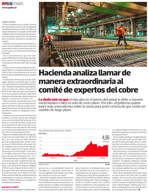 This is precisely what the Ministry of Finance is analyzing to determine whether or not to call an emergency committee of long-term copper prices.