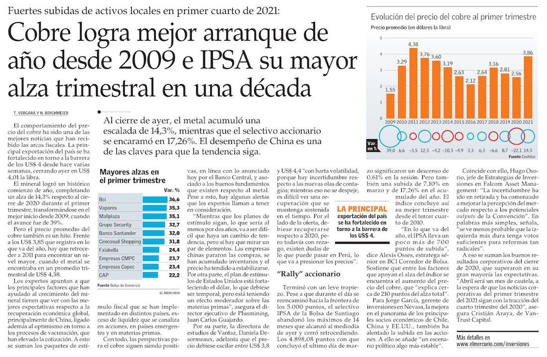In simpler words, he notes, “the harder left looks less likely to have enough votes for such radical reforms.” Added to this are the good corporate results at the end of 2020, which largely exceeded expectations. “April will be a month of caution, waiting for the corporate news of the first quarter of 2021 to continue with the traction of the fourth quarter of 2020,” says Cristián Araya, from VanTrust Capital.